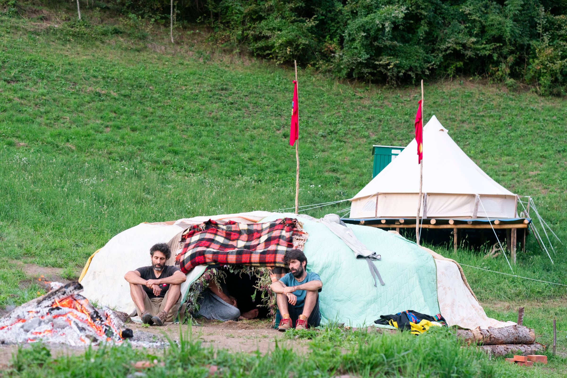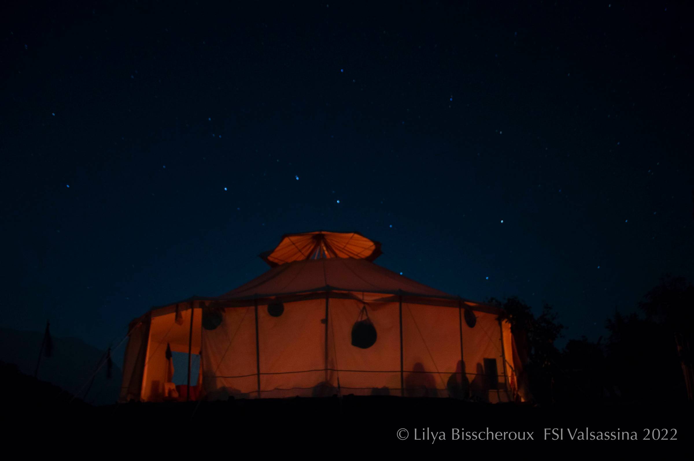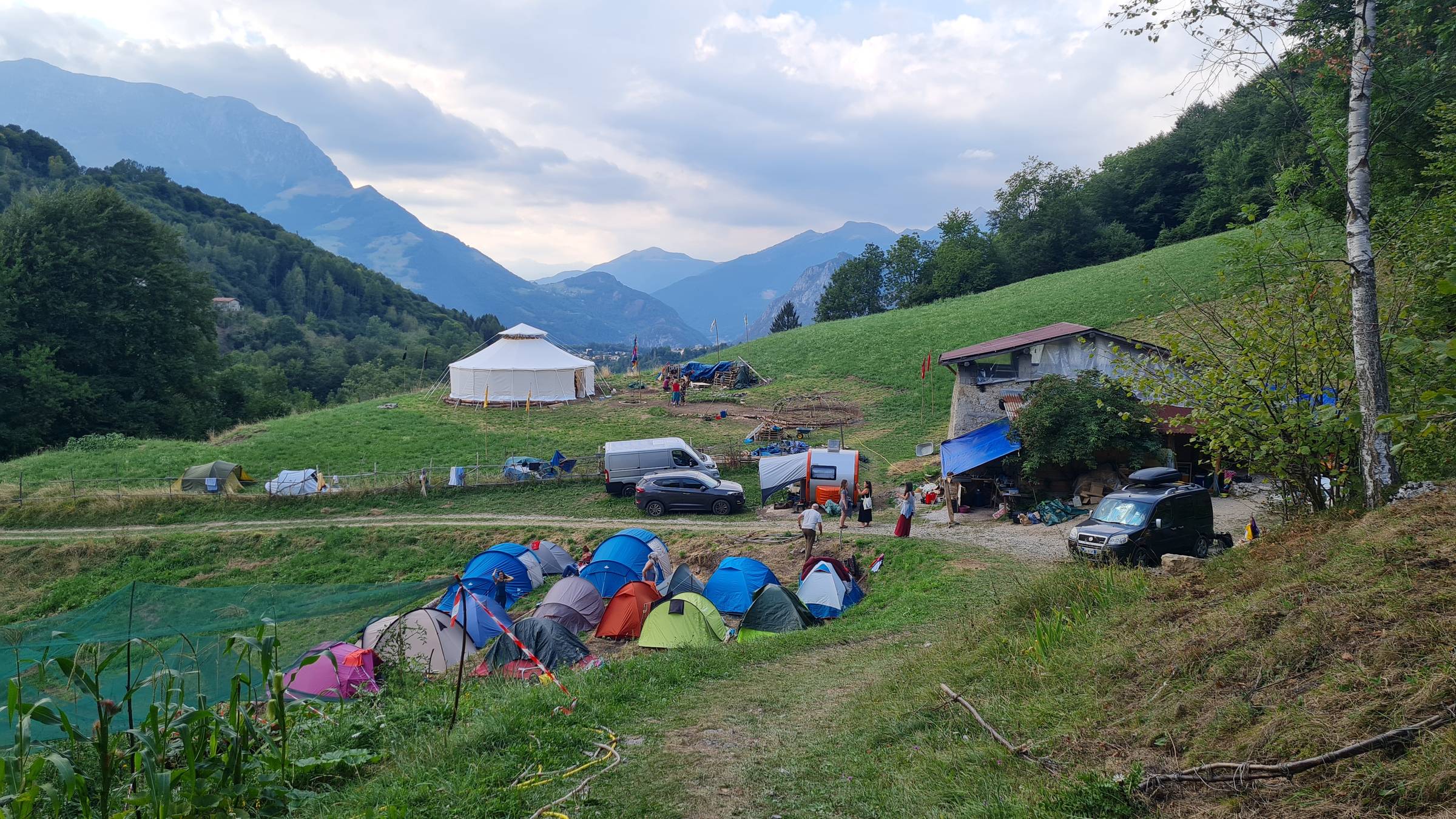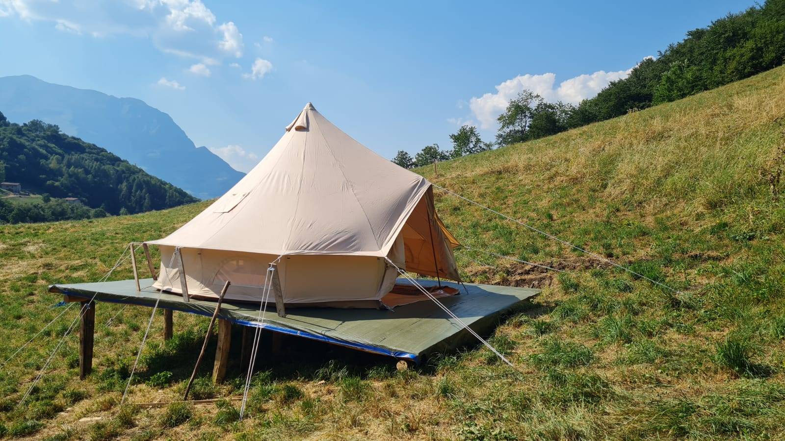 Rifornimento Acqua Potabile da fonte naturale Yurta per attività didattiche esperienziali Spazio piazzole tende private Bagni a secco Spazio docce calde con scaldabagno a legna Spazio cucina e area pasti Elettricità da generatore elettrico in orari serali Torrente e cascatelle per bagni rinfrescanti