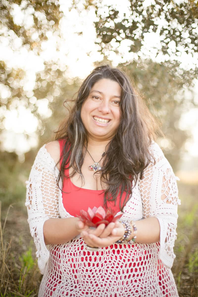 Sono una donna finalmente felice di esser donna. Ringrazio la terapia mestruale, le varie limpie, il cammino dei 13 ritiri di luna della tradizione del Cammino Rosso arrivata fino a me dalle mani della Mama Andrea Atekokolli, ringrazio il suo accompagnamento e la sua guida da quando l'ho conosciuta in Ecuador e ringrazio me stessa per essermi affidata al processo e alla Vita che vuole vivere. Desidero condividere con altre donne quello che ho scoperto sulla mia pelle e in cerchio con altre sorelle. Porto la Medicina della Sacra Pipa Chanupa e del Temazcal, la vibrazione della Danza del Sole, il potere armonizzante della "biodanza", il potere chiarificatore del counseling, la guarigione delle memorie uterine, in sintesi: porto me stessa così come sono, con cicatrici e segni di battaglie perse e vinte, ma sempre fonte di insegnamenti, con l'entusiasmo e la gioia di vivere che mi rendono felice di mettermi al servizio, per tutte le mie relazioni, per tutte le mie sorelle umane!